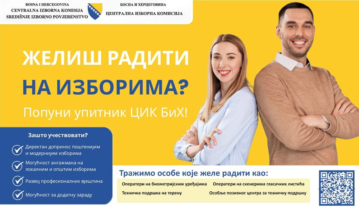 УПИТНИК за исказивање интереса лица са техничким знањем и вјештинама за ангажман у изборној администрацији Босне и Херцеговине